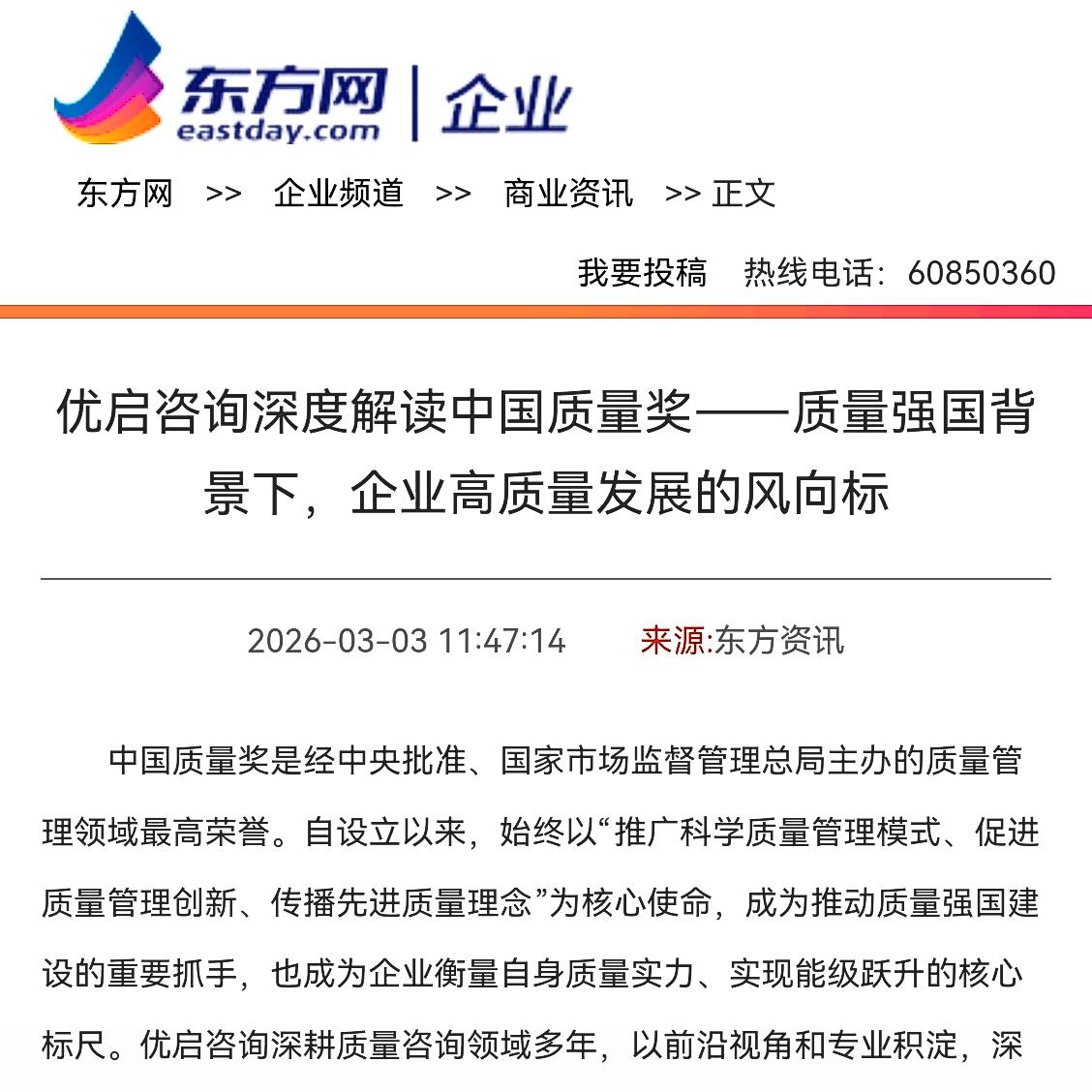 东方网权威刊发 || 优启咨询深度解码中国质量奖——质量强国背景下,企业高质量发展的风向标