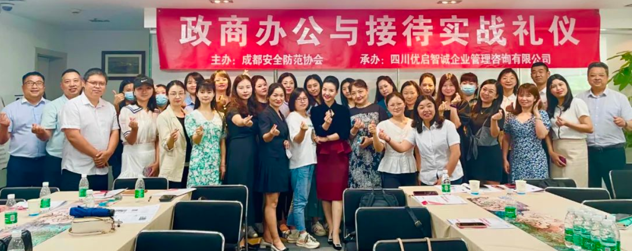 2022年6月2日上午,由成都安全防范协会主办,四川优启智诚承办的《政商办公与接待实战礼仪》培训班如期开班,学员们进行了为期1天的礼仪学习。